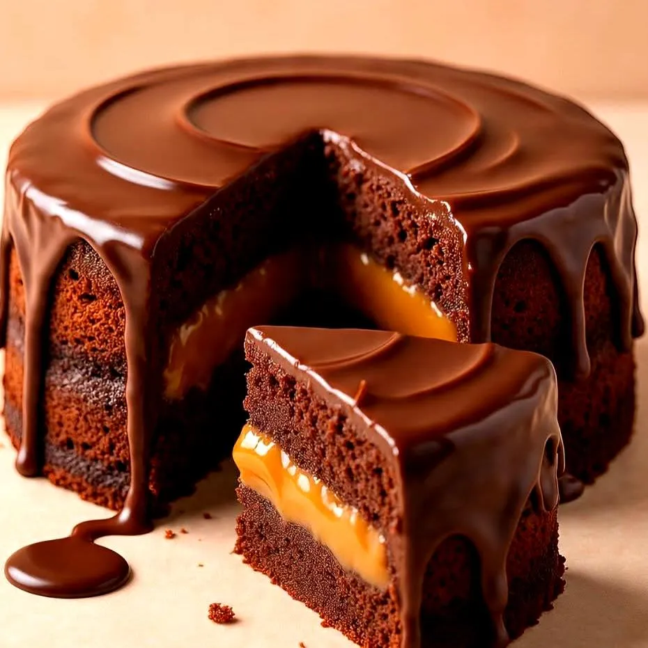 Bolo de Chocolate Recheio Caramelo Cremoso e Ganache Brilhante