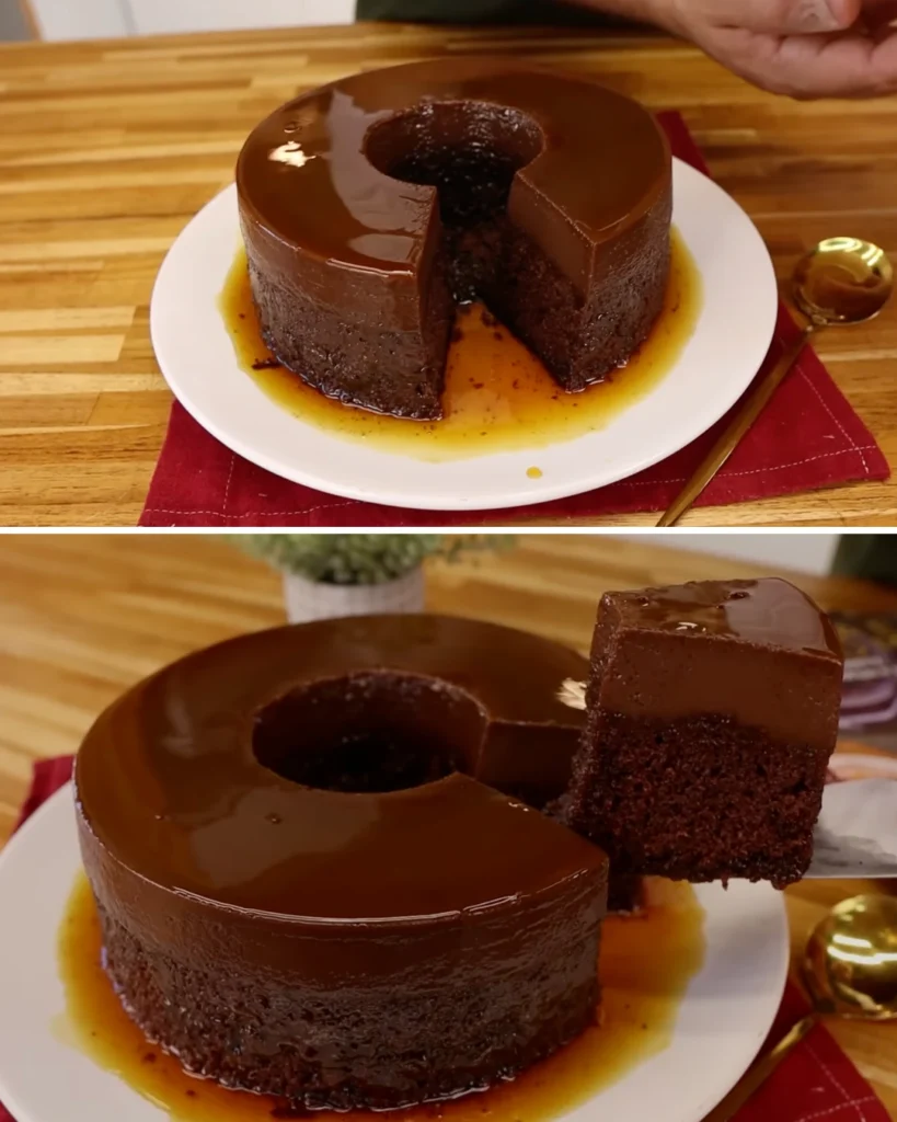 Esse bolo pudim de chocolate é uma daquelas receitas que viram tradição na família. Bonito, cremoso, marcante e extremamente simples de preparar. A separação perfeita entre bolo e pudim acontece sozinha no forno, e o resultado final é digno de confeitaria. Uma sobremesa que rende elogios, abraça quem prova e ainda pode ser sua próxima fonte de renda extra com doces artesanais.